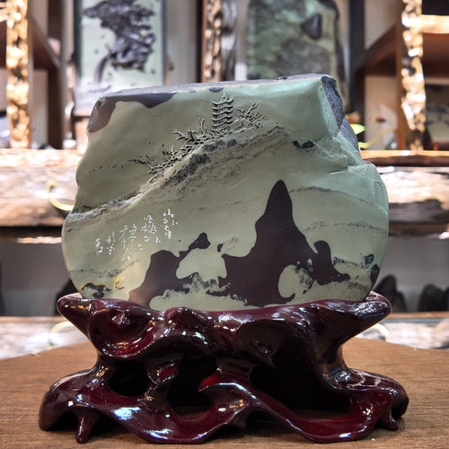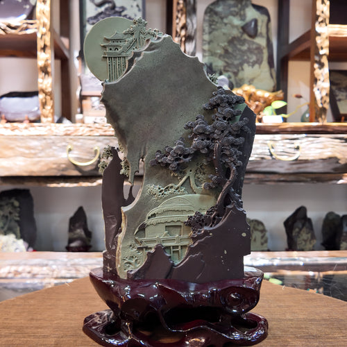 Originating from the Helan Mountains in Ningxia, China, this treasure has been naturally nurtured over 1.3 billion years. Its unique purple and green dual colors symbolize wisdom and harmony. Each piece is hand-carved, carrying Eastern blessings and good fortune, resilience and longevity, wealth and prosperity, as well as success and balance, making it a unique work of art.