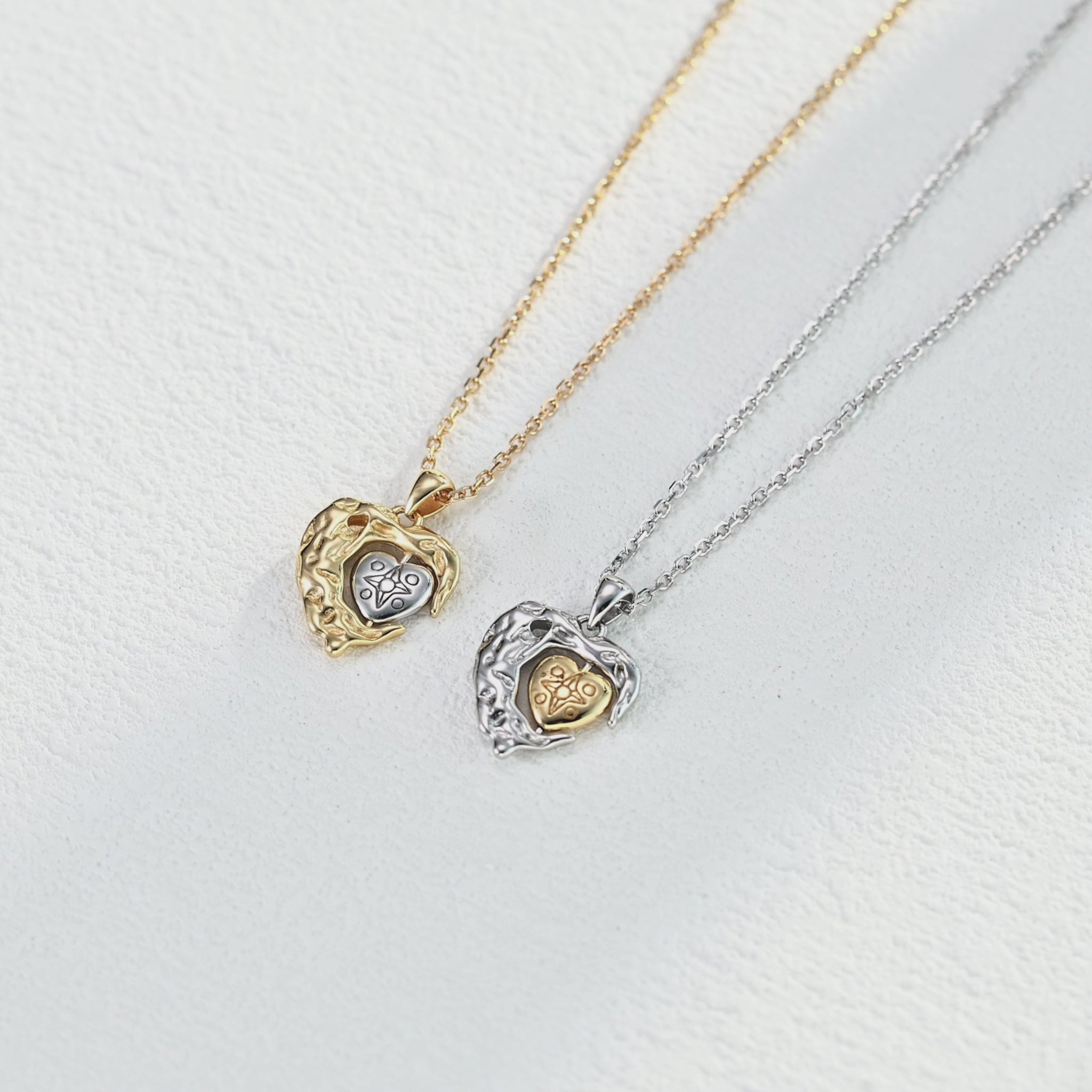 This retro design heart-shaped pendant necklace combines the warm romance of retro gold with the pure elegance of platinum. The dual-color flip heart features retro gold outlining or accenting the edges, while the main body shines in white gold, creating a striking contrast. Crafted from S925 silver, this necklace adds a touch of timeless sophistication to any outfit, perfect for making a memorable impression at special occasions.